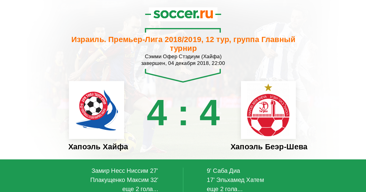 Хапоэль Хайфа - Хапоэль Беэр-Шева: обзор матча 4 декабря 2018