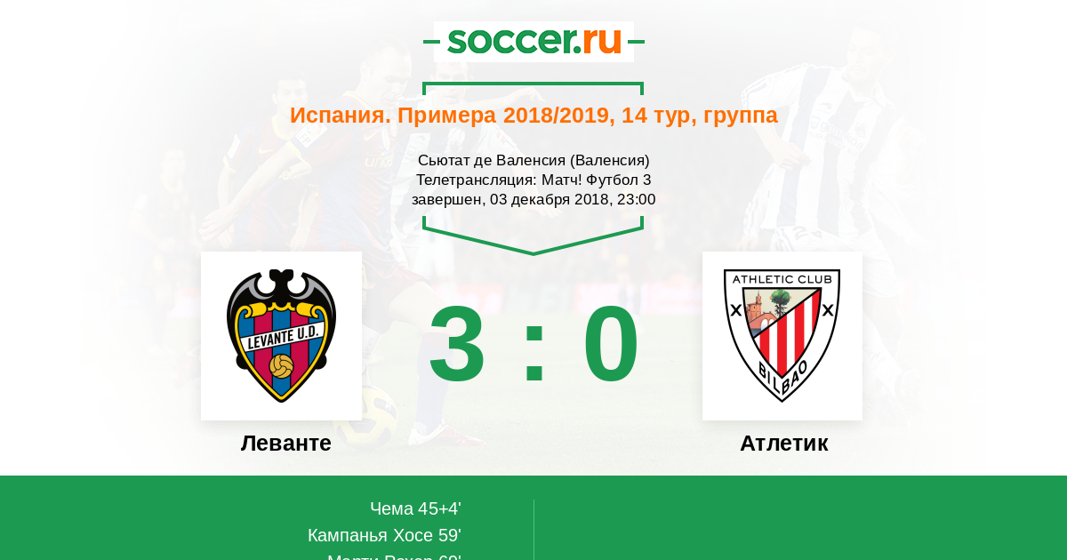 Леванте - Атлетик: обзор матча 3 декабря 2018