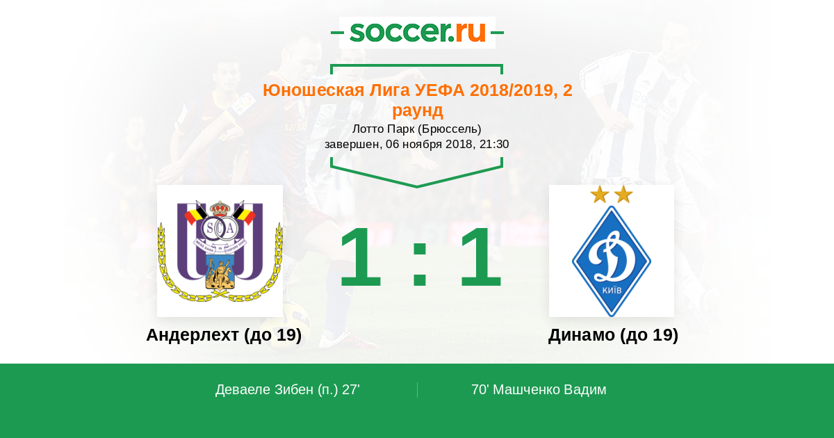 Андерлехт (до 19) - Динамо (до 19): обзор матча 6 ноября 2018