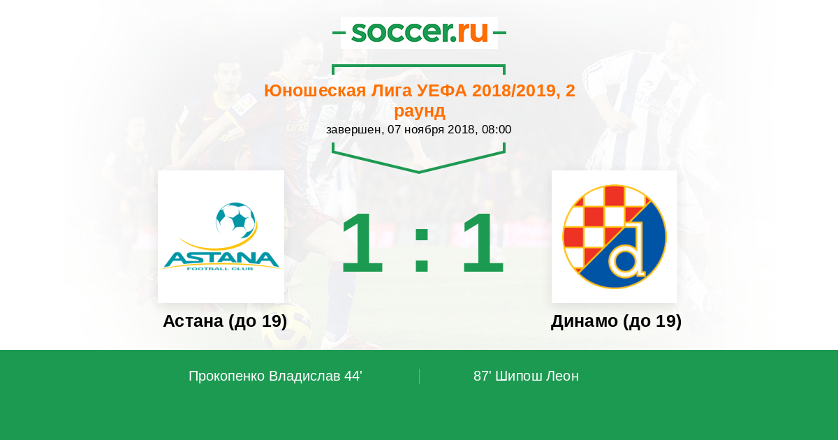 Астана (до 19) - Динамо (до 19): обзор матча 7 ноября 2018