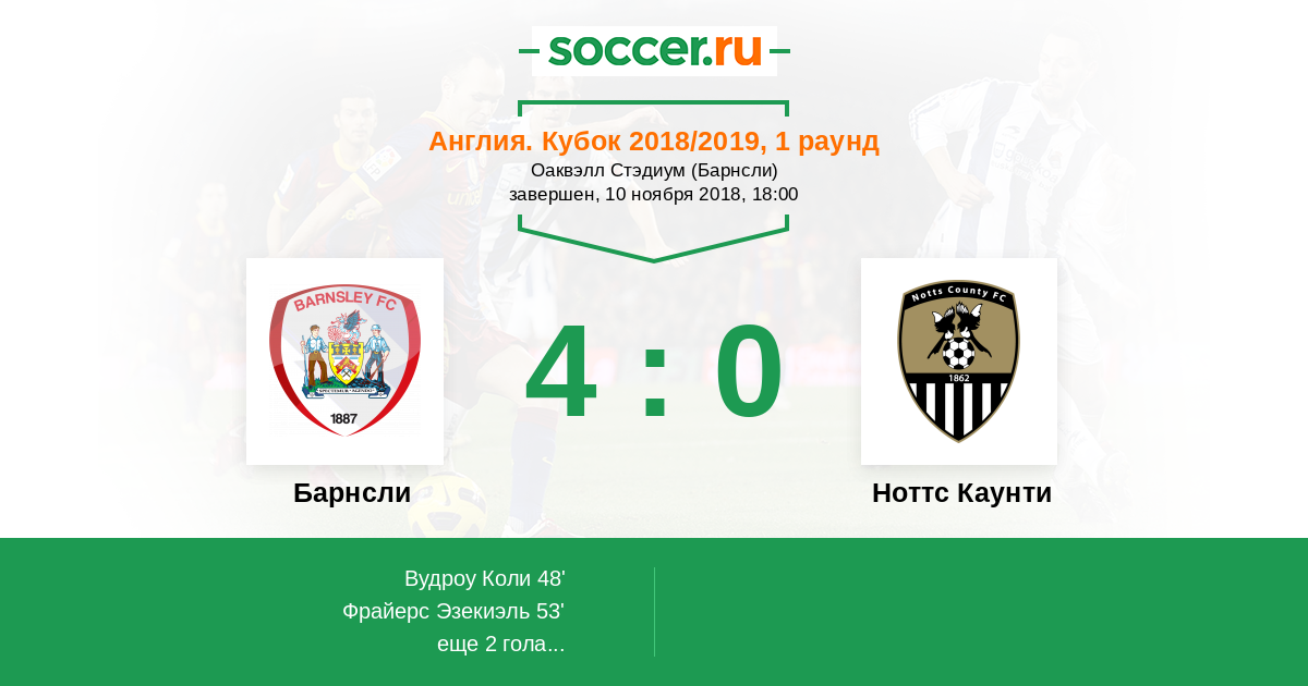 Барнсли - Ноттс Каунти: обзор матча 10 ноября 2018