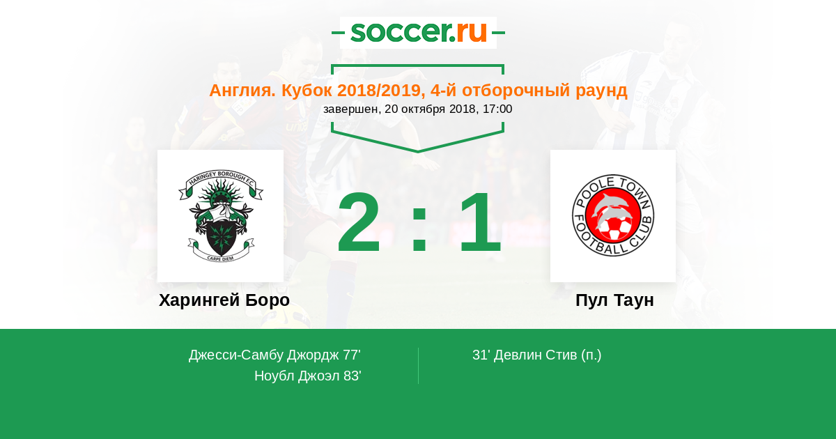 Харингей Боро - Пул Таун: обзор матча 20 октября 2018