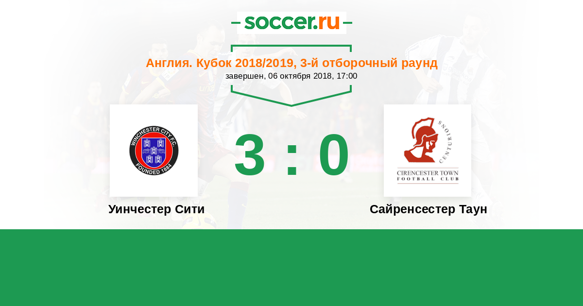 Уинчестер Сити - Сайренсестер Таун: обзор матча 6 октября 2018