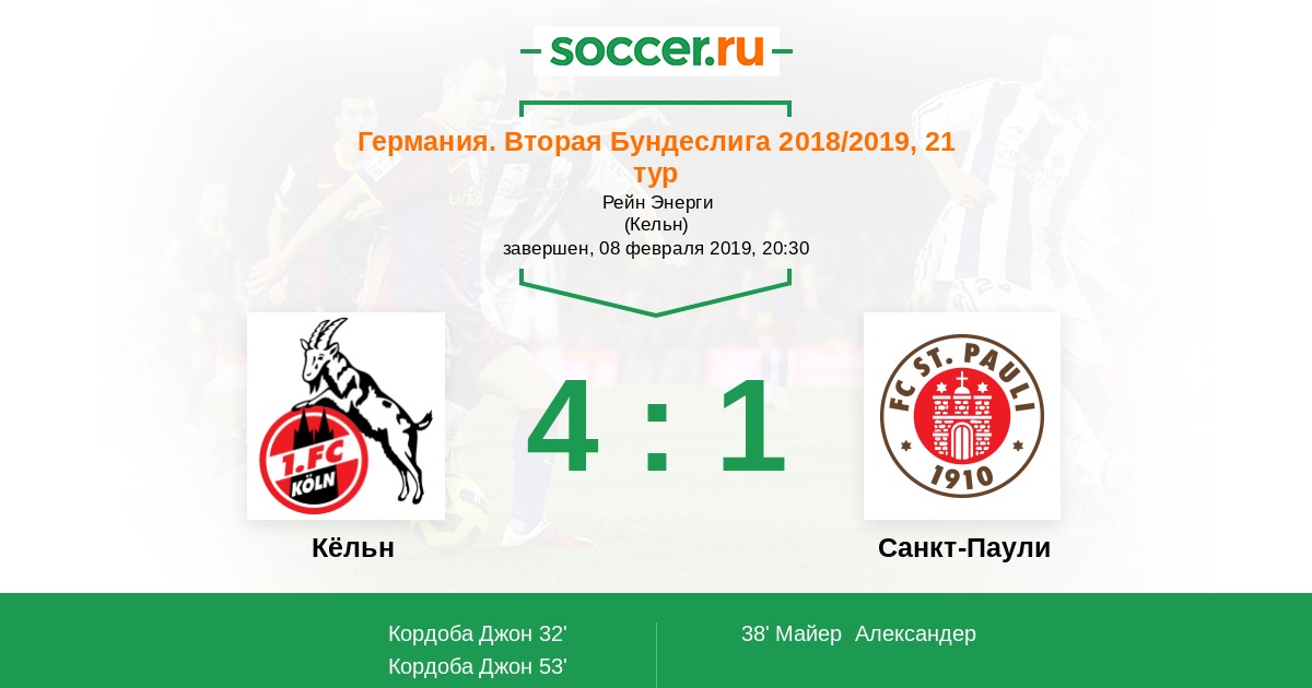 Кёльн - Санкт-Паули: обзор матча 8 февраля 2019
