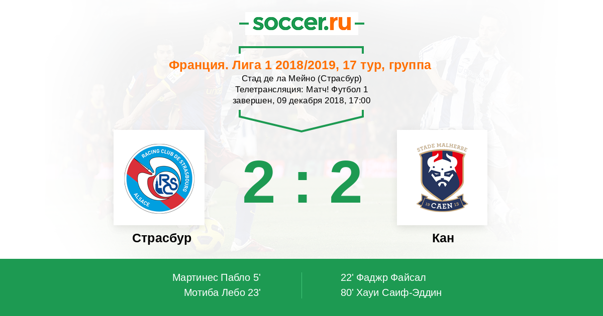Страсбур, Стад де ла Мейно Телетрансляция: Матч! Футбол 1