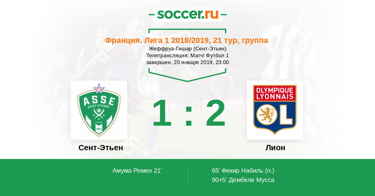 Сент-Этьен, Жеффруа-Гишар Телетрансляция: Матч! Футбол 1