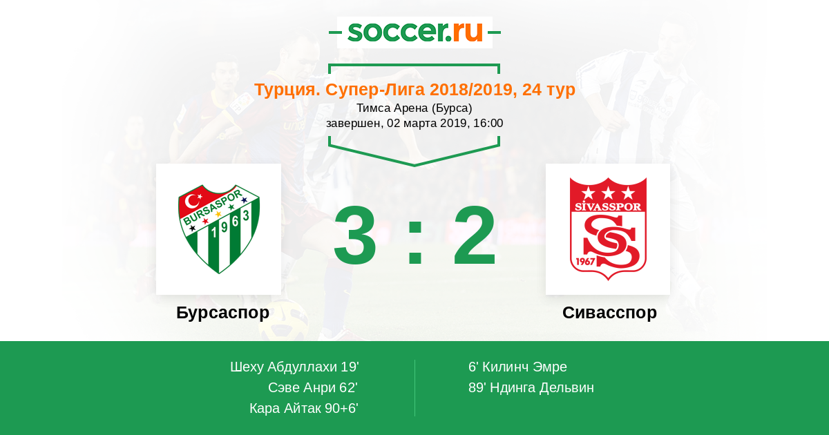 Бурсаспор - Сивасспор: обзор матча 2 марта 2019
