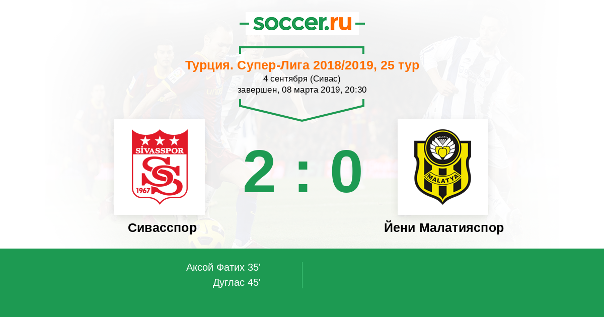 Сивасспор - Йени Малатияспор: обзор матча 8 марта 2019