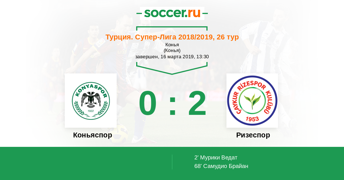 Коньяспор - Ризеспор: обзор матча 16 марта 2019