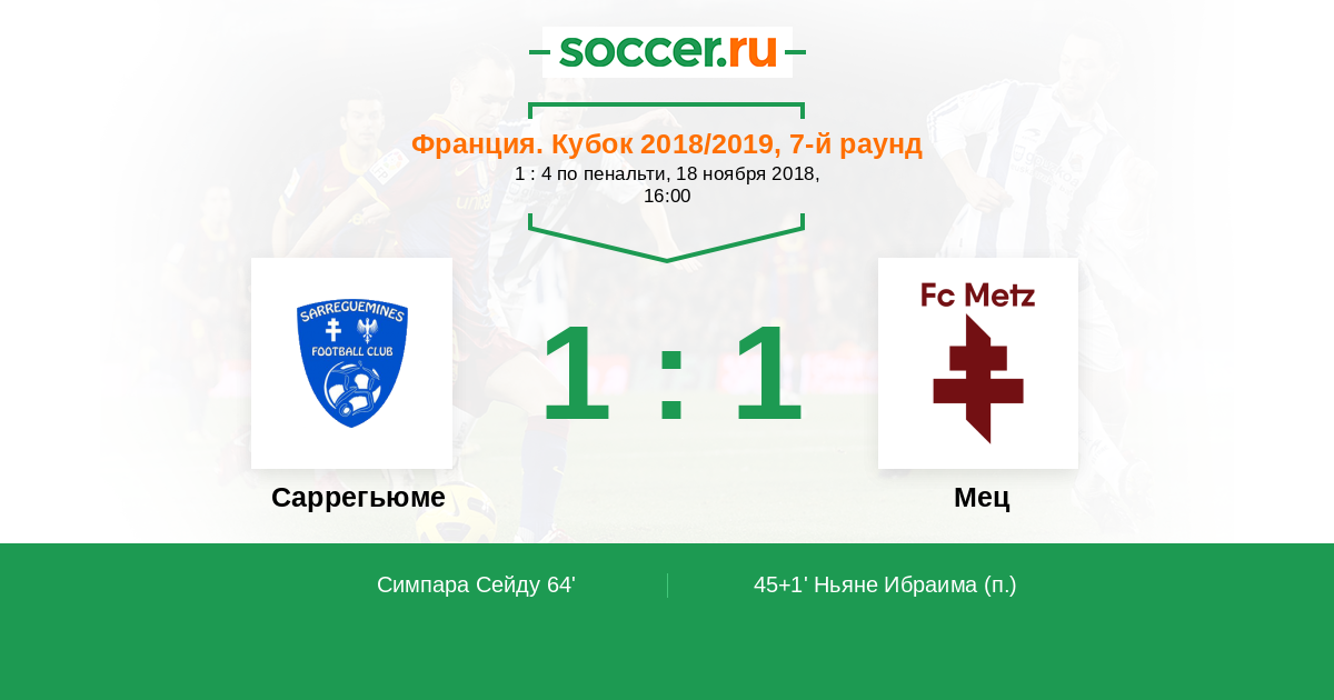 Саррегьюме - Мец: обзор матча 18 ноября 2018