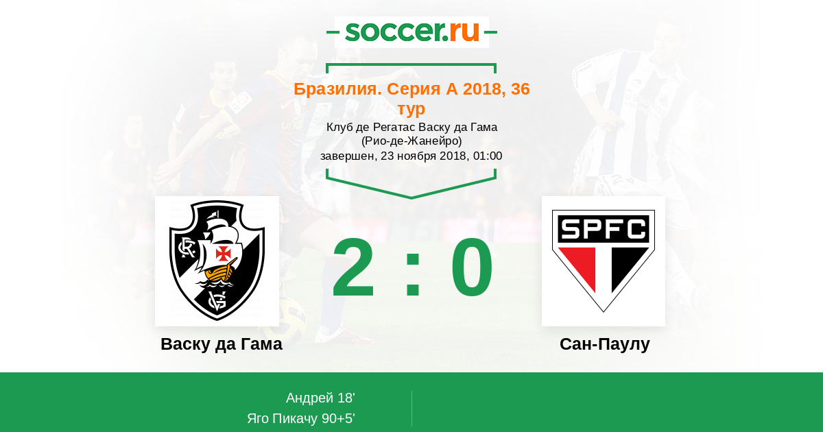 Васку да Гама - Сан-Паулу: обзор матча 23 ноября 2018