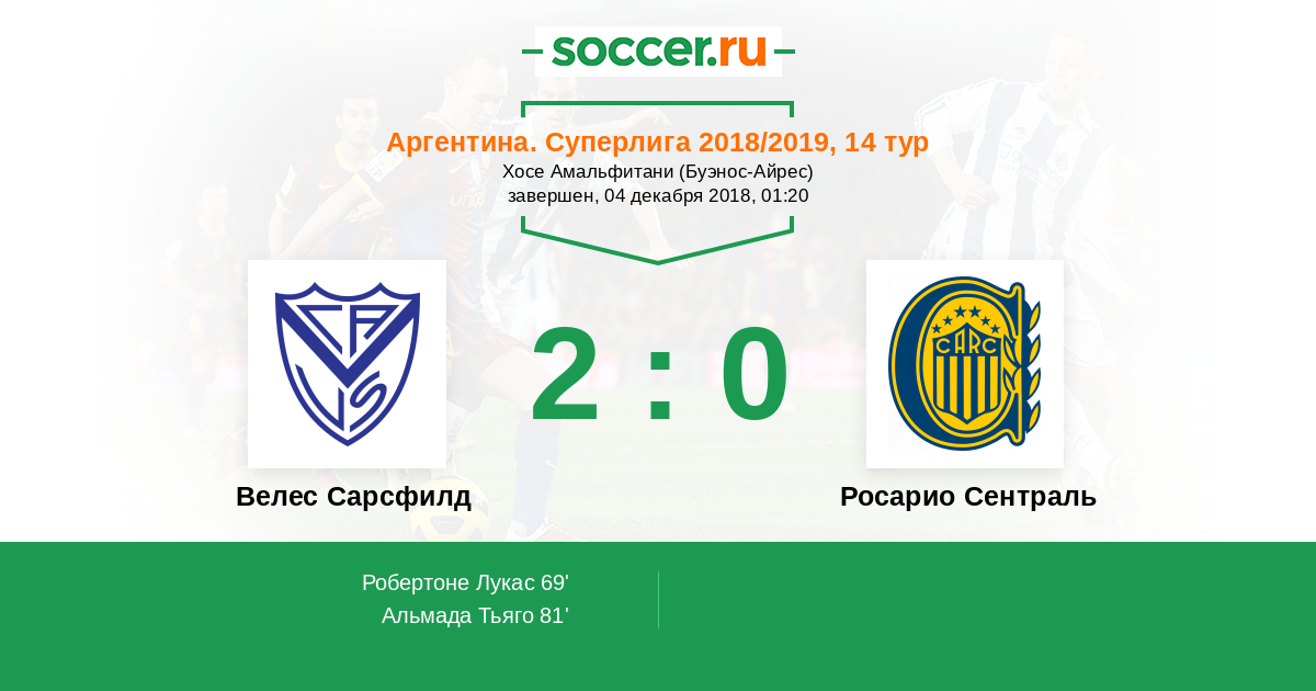 Велес Сарсфилд - Росарио Сентраль: обзор матча 4 декабря 2018