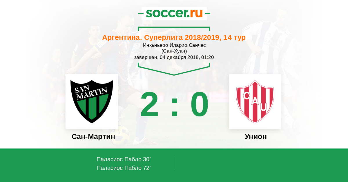 Сан-Мартин - Унион: обзор матча 4 декабря 2018