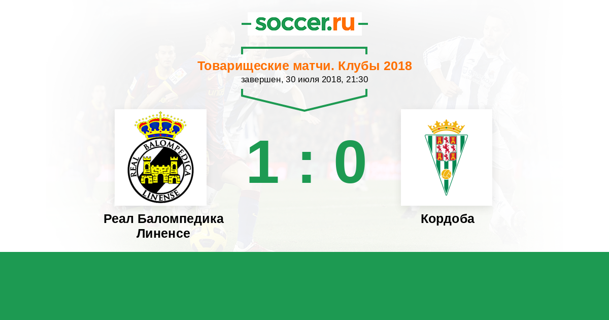 Реал Баломпедика Линенсе - Кордоба: обзор матча 30 июля 2018