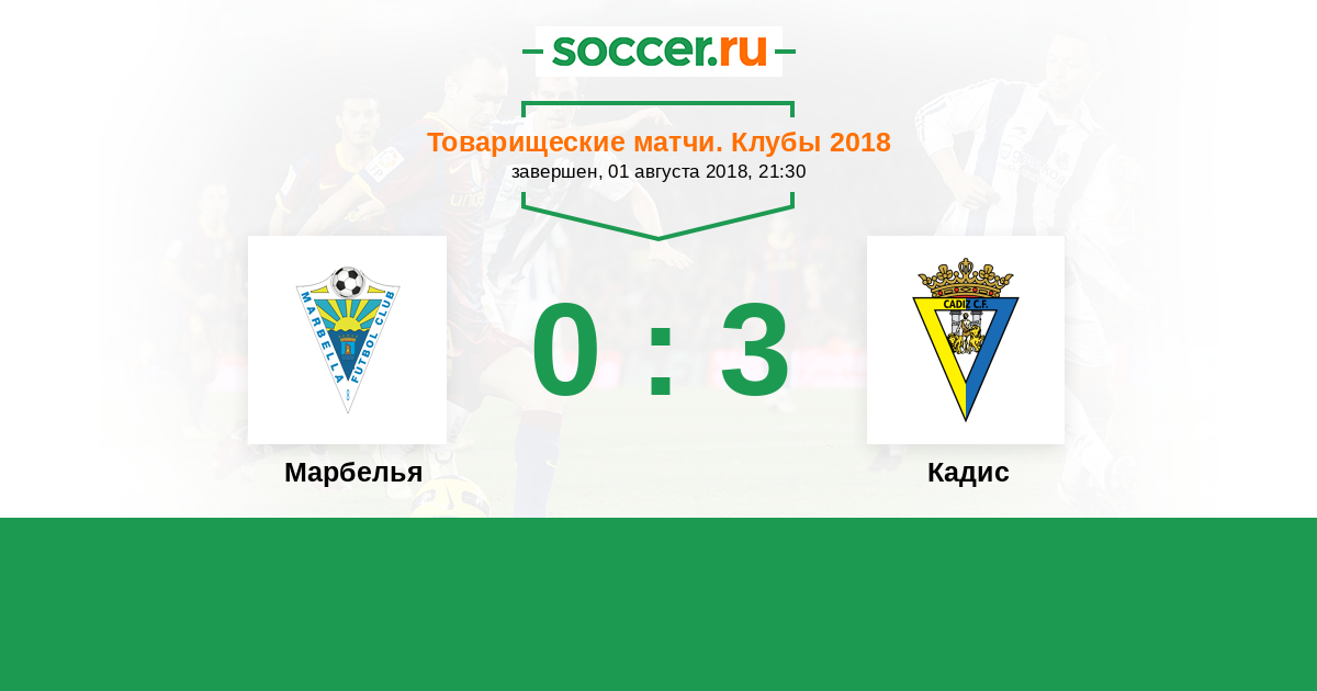Марбелья - Кадис: обзор матча 1 августа 2018