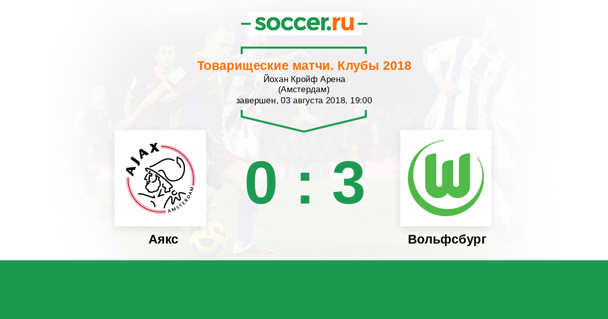 Аякс - Вольфсбург: обзор матча 3 августа 2018