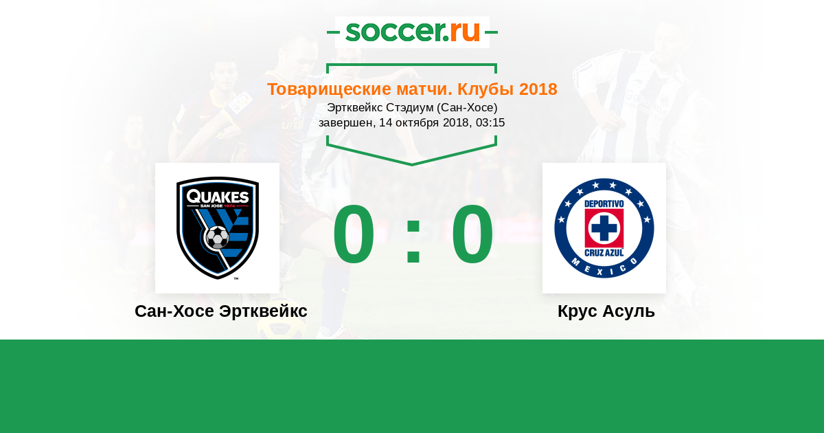 Сан-Хосе Эртквейкс - Крус Асуль: обзор матча 14 октября 2018