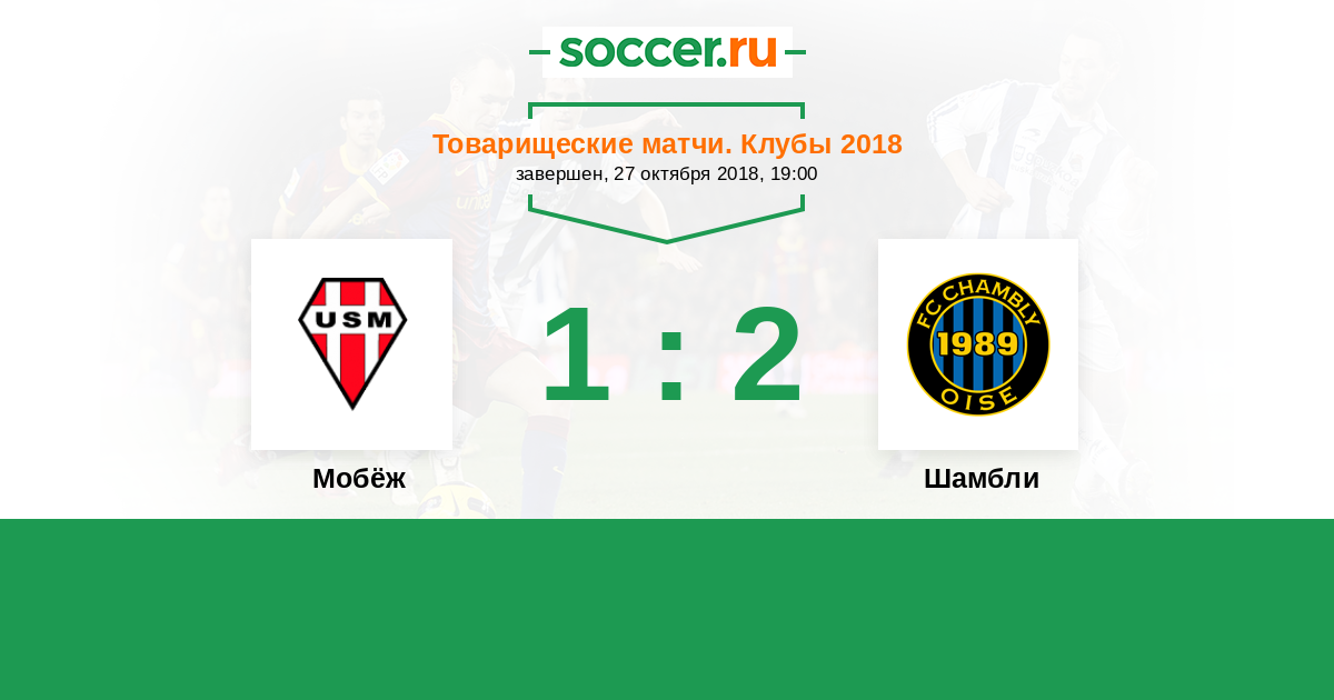 Мобёж - Шамбли: обзор матча 27 октября 2018