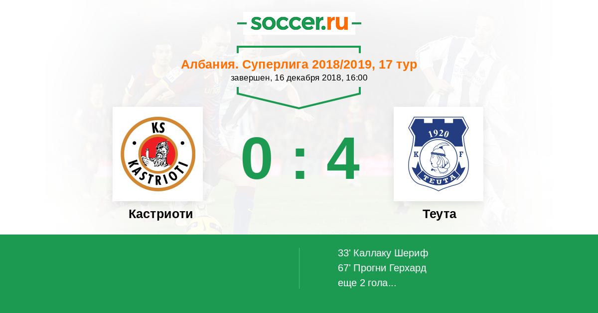 Кастриоти - Теута: обзор матча 16 декабря 2018