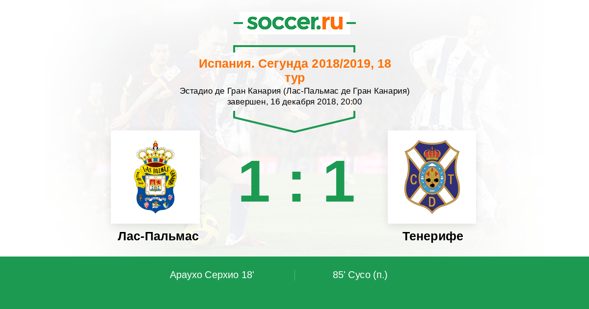 Лас-Пальмас - Тенерифе: обзор матча 16 декабря 2018