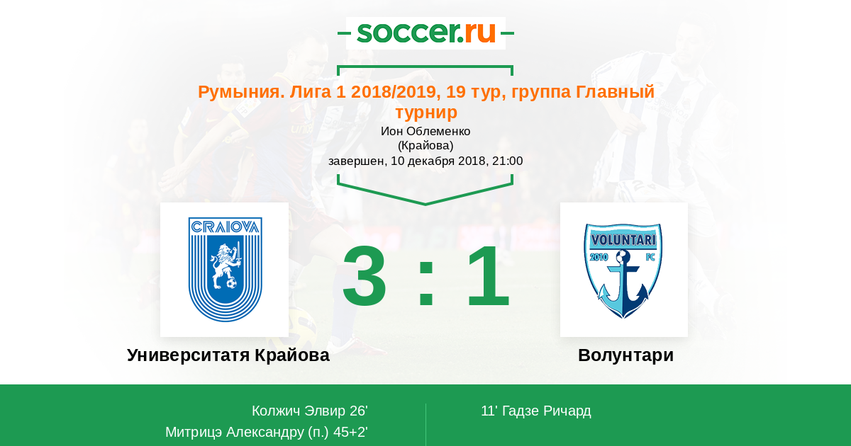 Университатя Крайова - Волунтари: обзор матча 10 декабря 2018