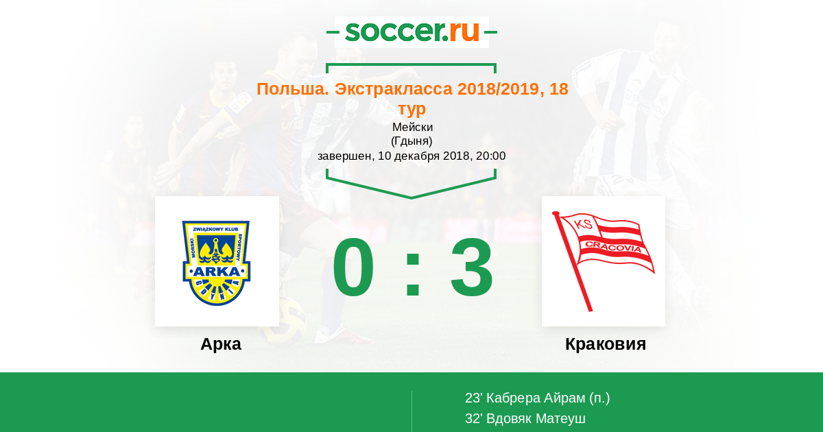 Арка - Краковия: обзор матча 10 декабря 2018