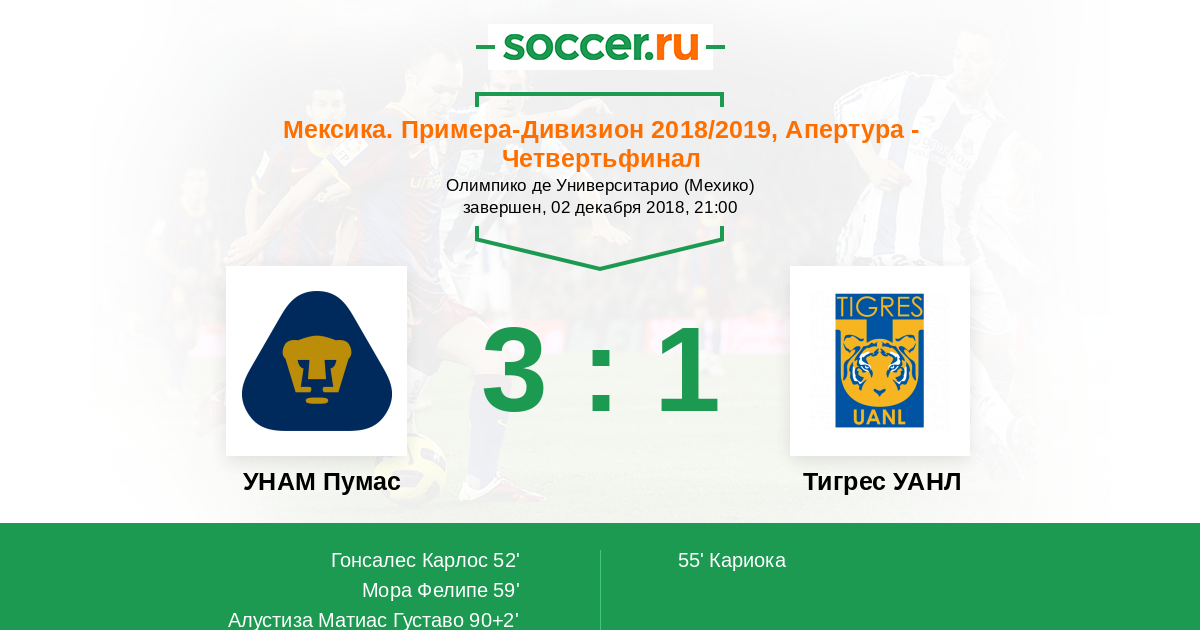 УНАМ Пумас - Тигрес УАНЛ: обзор матча 2 декабря 2018
