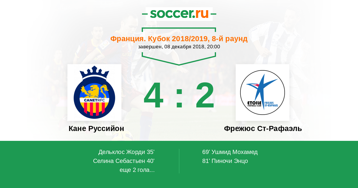 Кане Руссийон - Фрежюс Ст-Рафаэль: обзор матча 8 декабря 2018