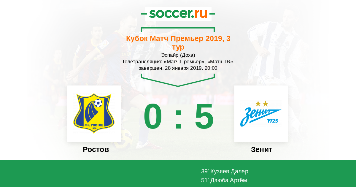 В рамках 3-го тура коммерческого турнира "Кубок Матч Премьер" "Ростов" сыграет с питерским "Зенитом". "Зенит" проиграл предыдущие два матча и явно будет нацелен на победу в игре с "Ростовом". Ждать ли победы "сине-бело-голубых"? Сайт https://www.soccer.ru проведёт прямую текстовую онлайн трансляцию матча, следить за событиями на поле и комментировать игру для вас будет Старчеус Сергей.