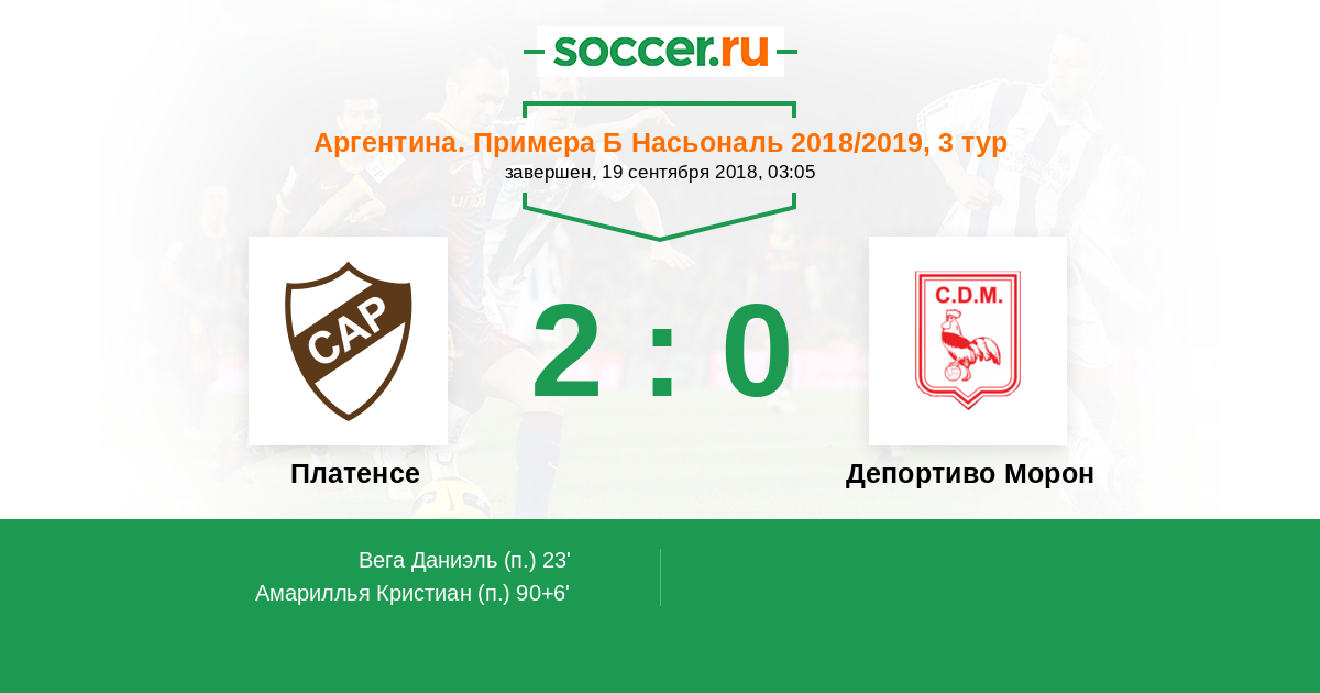 Платенсе - Депортиво Морон: обзор матча 19 сентября 2018
