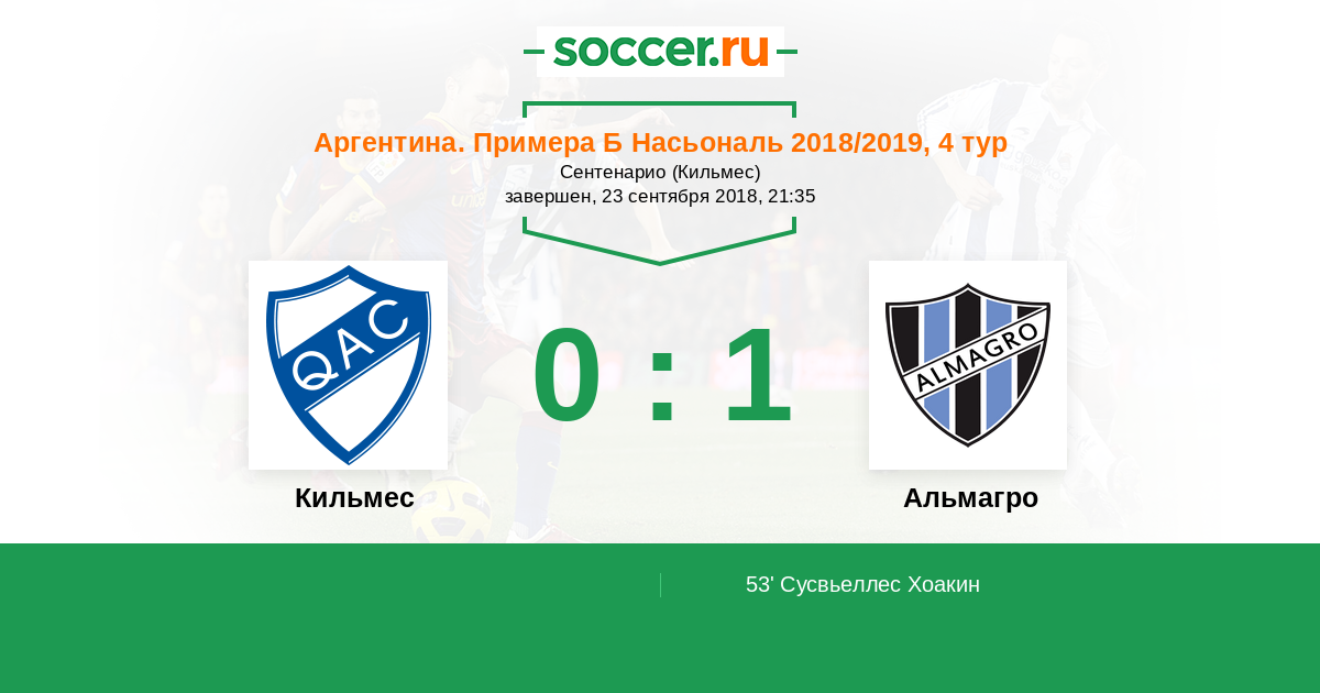 Кильмес - Альмагро: обзор матча 23 сентября 2018