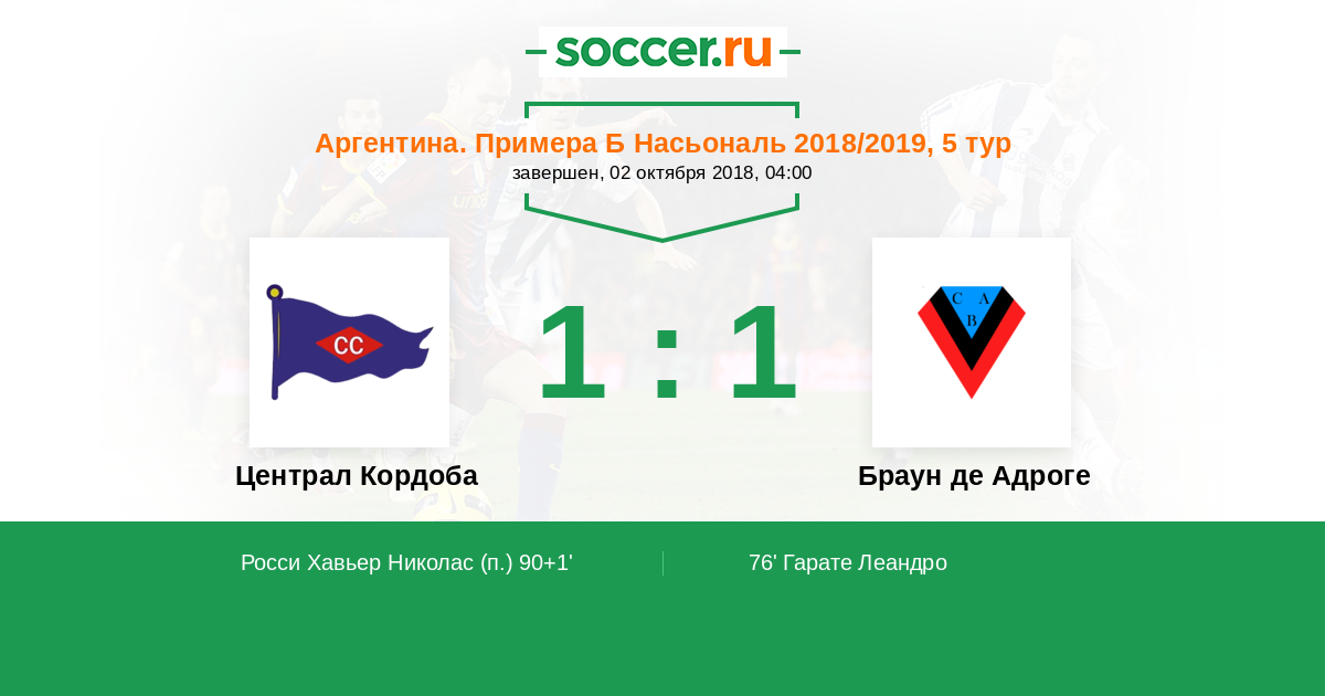 Централ Кордоба - Браун де Адроге: обзор матча 2 октября 2018