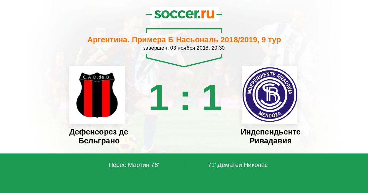 Дефенсорез де Бельграно - Индепендьенте Ривадавия: обзор матча 3 ноября 2018