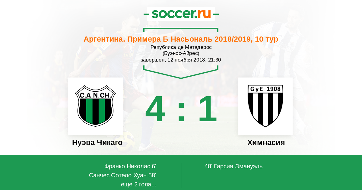 Нуэва Чикаго - Химнасия: обзор матча 12 ноября 2018