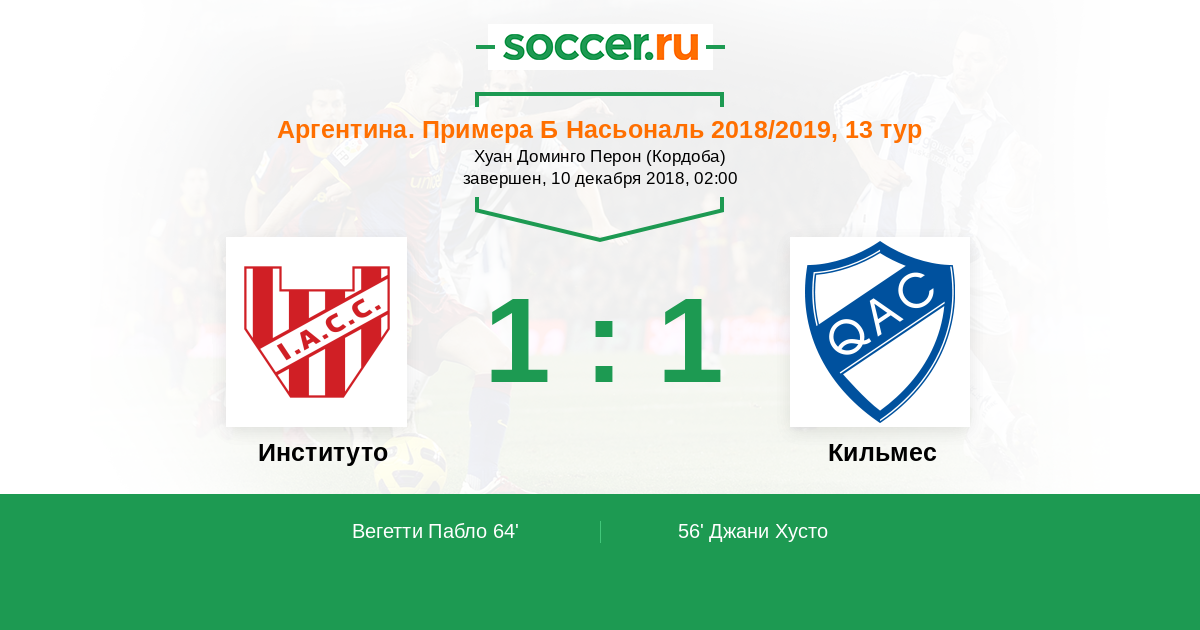 Институто - Кильмес: обзор матча 10 декабря 2018
