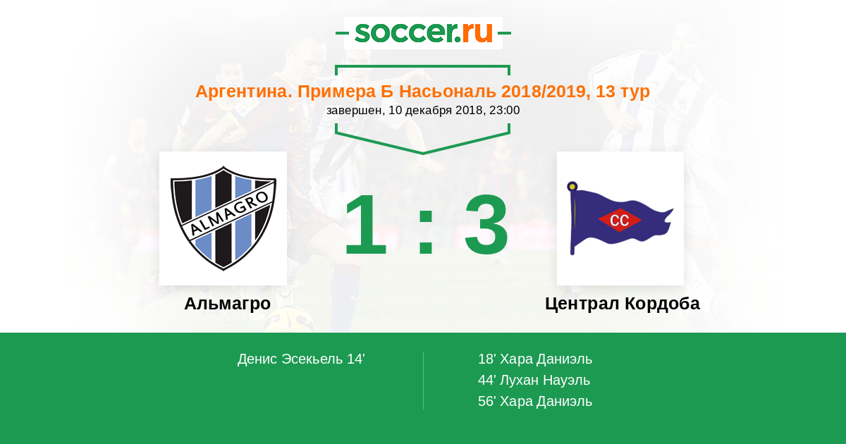 Альмагро - Централ Кордоба: обзор матча 10 декабря 2018
