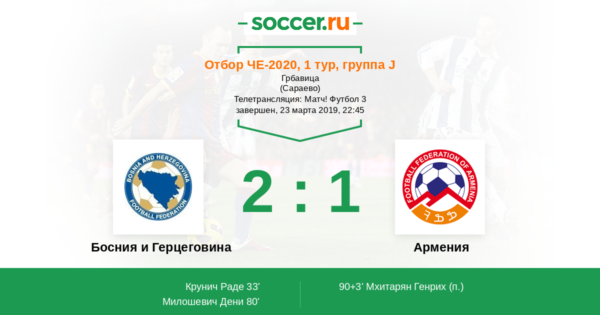 Босния и Герцеговина - Армения: обзор матча 23 марта 2019