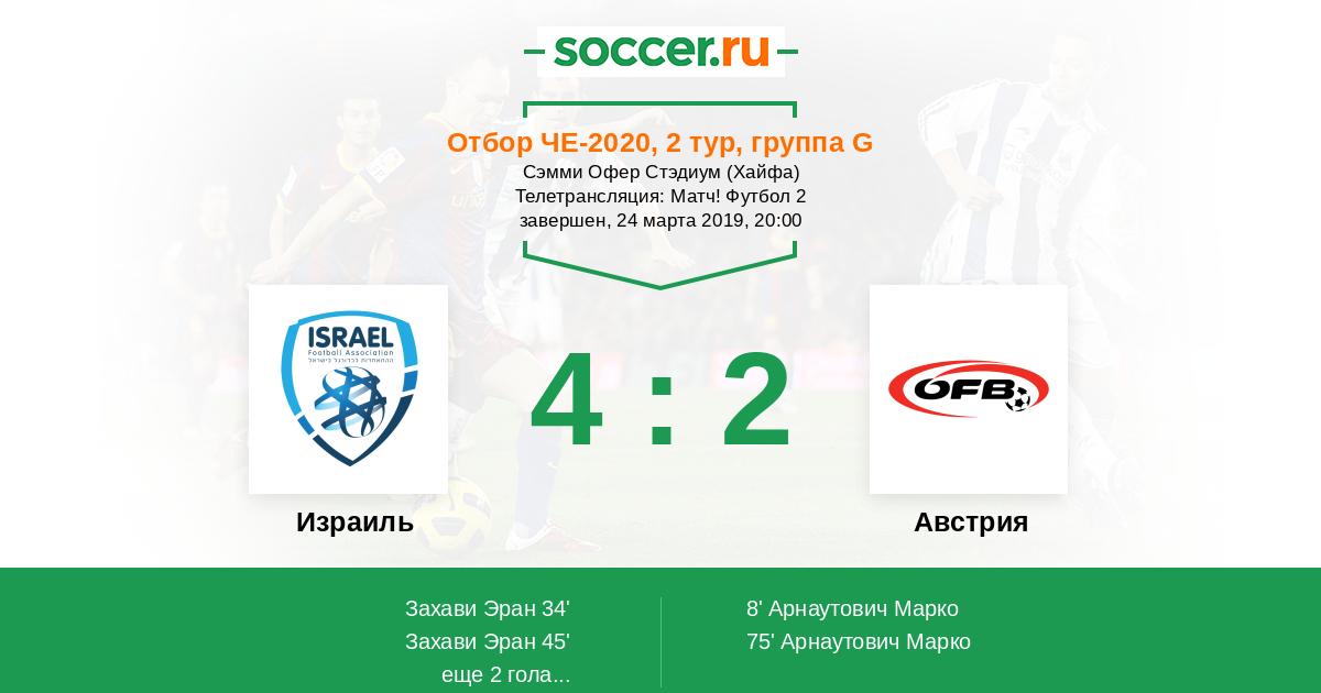 Хайфа, Сэмми Офер Стэдиум Телетрансляция: Матч! Футбол 2