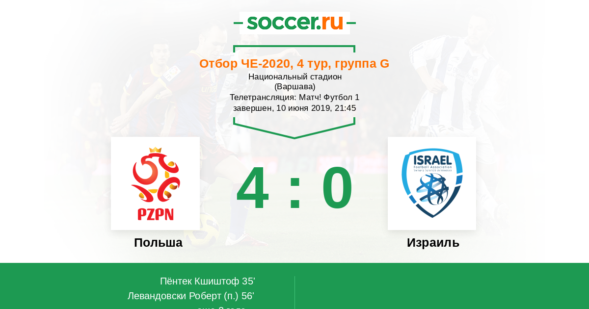 Польша - Израиль: обзор матча 10 июня 2019