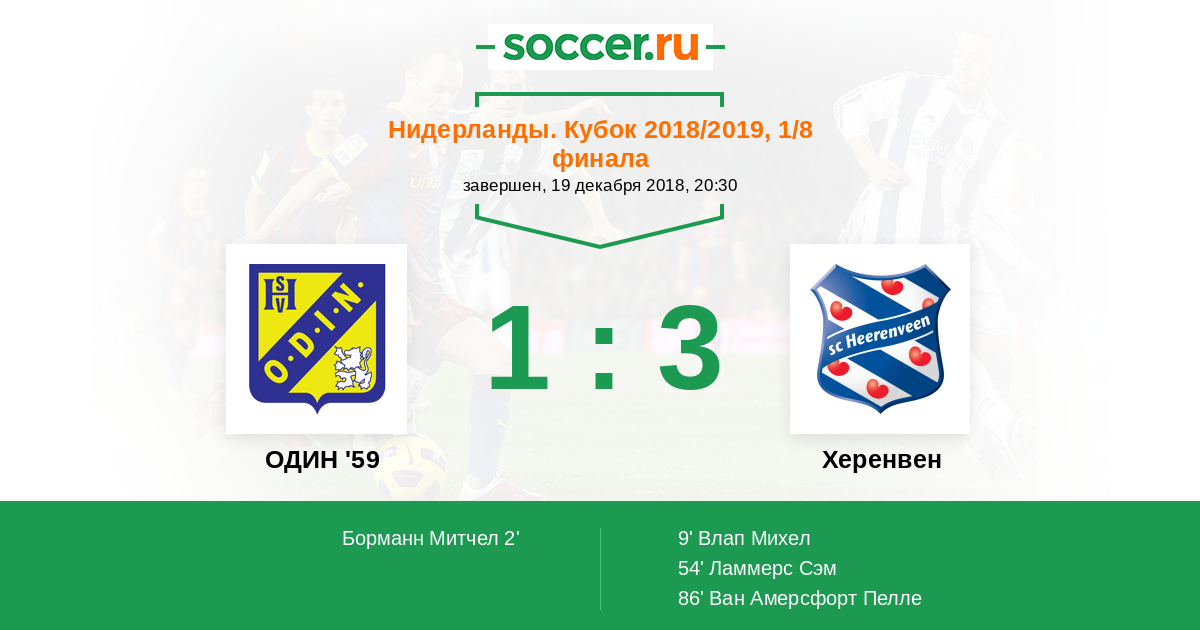 ОДИН '59 - Херенвен: обзор матча 19 декабря 2018