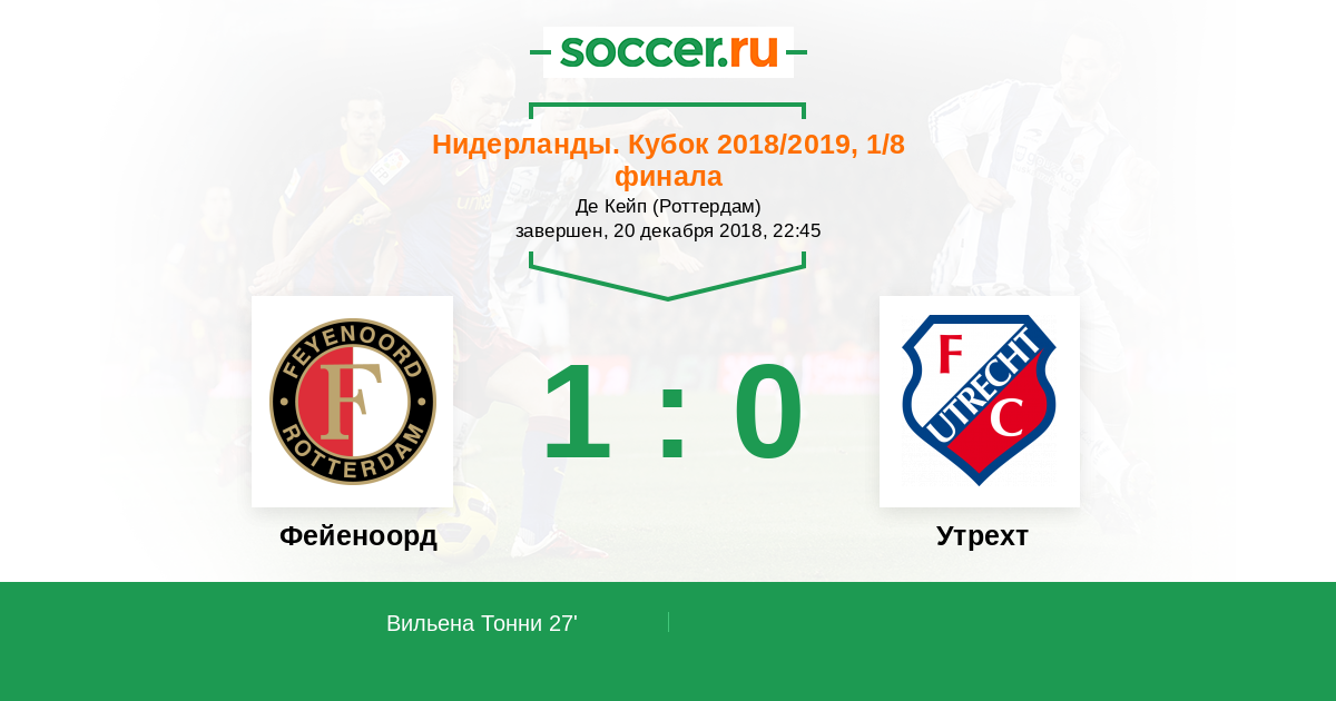 Фейеноорд - Утрехт: обзор матча 20 декабря 2018