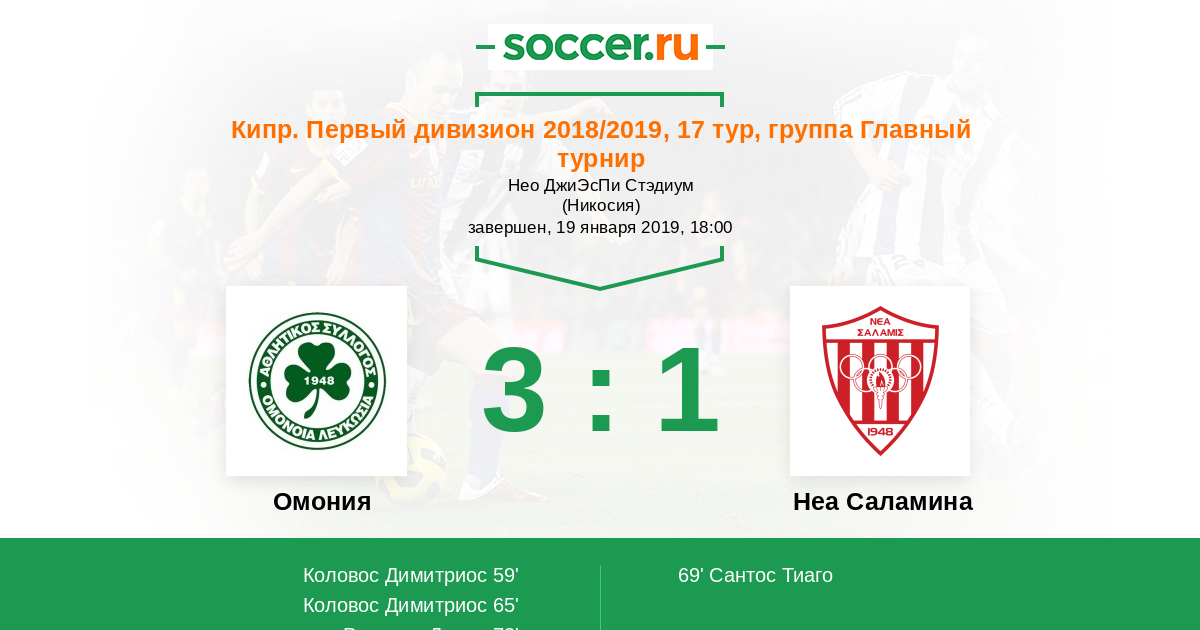 Омония - Неа Саламина: обзор матча 19 января 2019