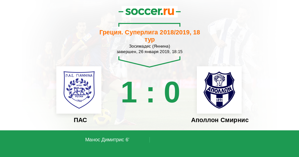 ПАС - Аполлон Смирнис: обзор матча 26 января 2019