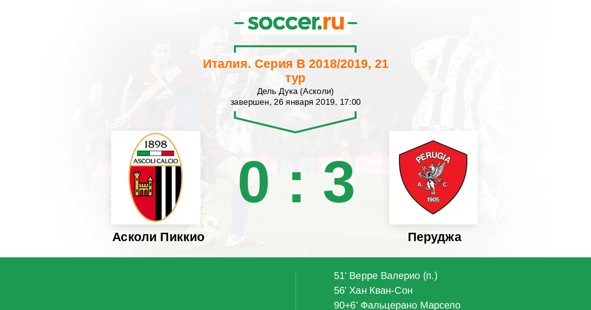 Асколи Пиккио - Перуджа: обзор матча 26 января 2019