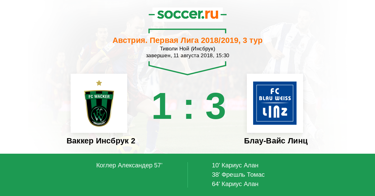 Ваккер Инсбрук 2 - Блау-Вайс Линц: обзор матча 11 августа 2018