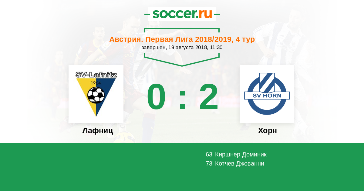 Лафниц - Хорн: обзор матча 19 августа 2018