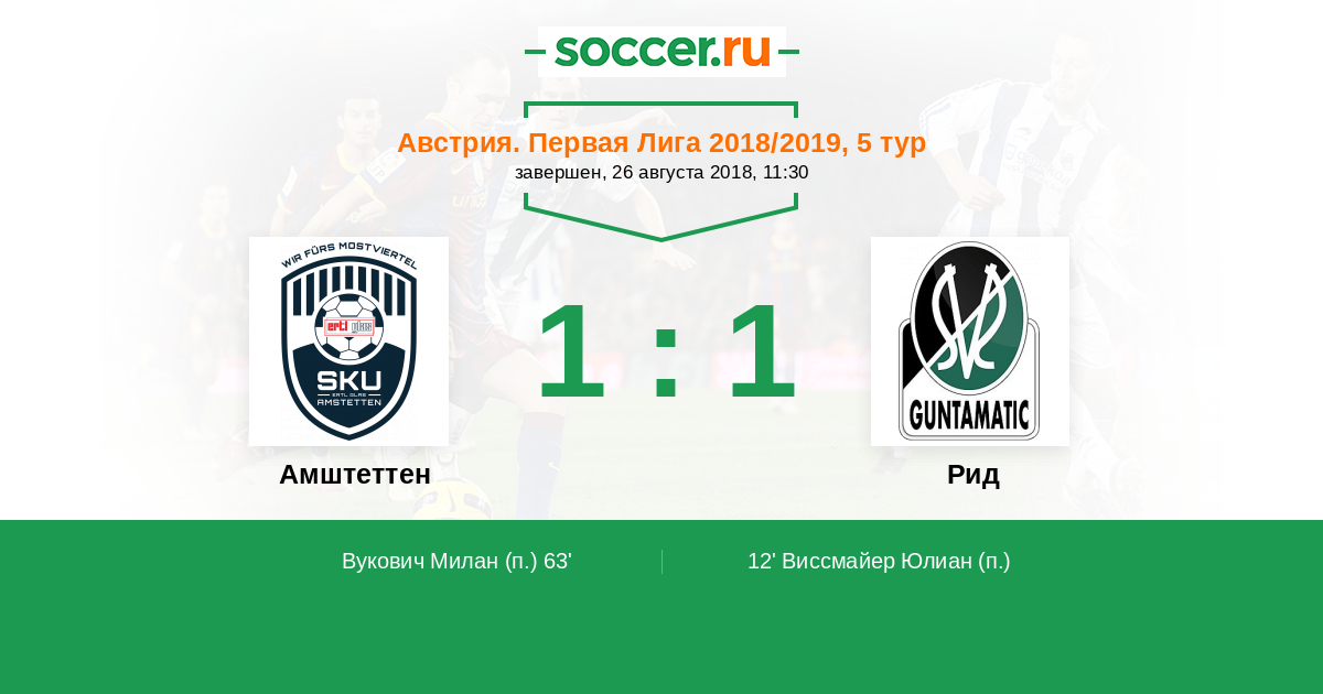 Амштеттен - Рид: обзор матча 26 августа 2018