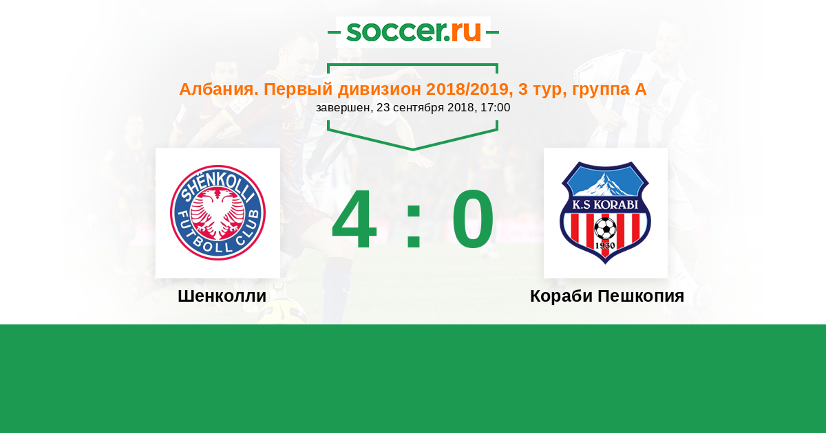 Шенколли - Кораби Пешкопия: обзор матча 23 сентября 2018