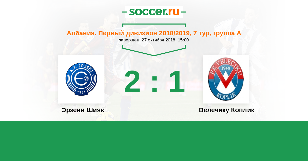 Эрзени Шияк - Велечику Коплик: обзор матча 27 октября 2018
