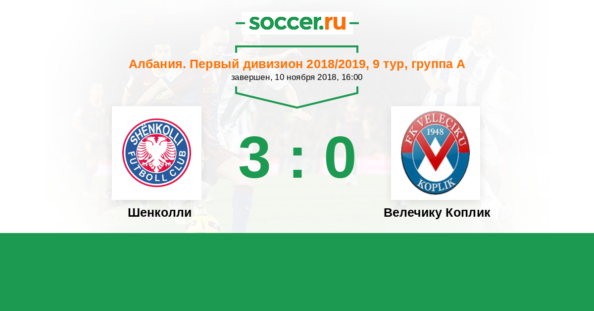 Шенколли - Велечику Коплик: обзор матча 10 ноября 2018